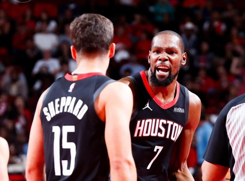 关键阿门也没投射,1、2号位都打不了,如果打3号位可以,但和杜兰特位置重叠;打4号位对抗不太够。还有谢泼德,本赛季成长确实很明显,而且具备攻防一体的属性。但要注意,所谓的攻防一体,是他作为协防人来说,他的判断和大局观很出色,但就他个人来说,高度和横移速度是短板。对手知道他能投,限制他出手,他控运速率远没有达到合格轮转的地步,只不过是火箭整体掩盖了谢泼德的缺陷。还有很容易让人产生错觉的小贾,有投射有防守积极性,但进步不明显,持球能力不足。当然,杜兰特依旧无解。