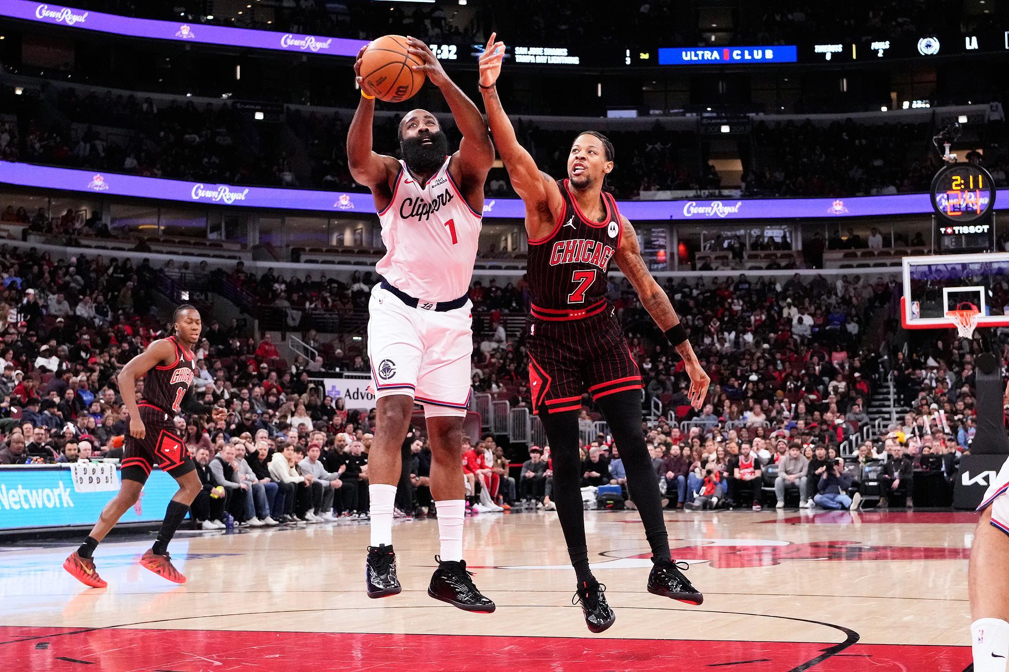 在小卡缺阵情况下连斩猛龙、奇才拿下6连胜后,快船队迎来与东部3连客最后一个对手公牛之间的较量,最终哈登单核带队的快船没能延续神奇表现,以110-138狂输28分早早败下阵来。